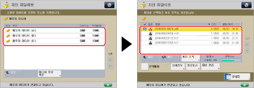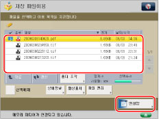 메모리 미디어에 두 개 이상의 문서가 저장된 경우 [명칭]이나 [날짜/시각]을 눌러 파일 리스트를 정렬할 수 있습니다.