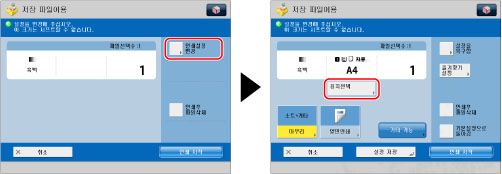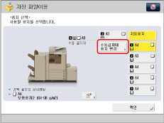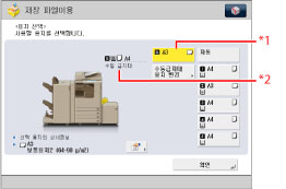 인쇄 대기 중인 예약 작업이 2개 이상인 경우, 예약된 작업에 지정된 최근 용지 크기/종류만 용지선택 화면과 일반 복사 기본 기능 화면에 나타납니다.