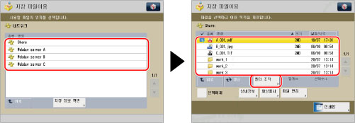 원하는 저장 위치를 선택하고 → 원하는 폴더 수준을 선택한 다음 → [폴더 조작]을 누릅니다.