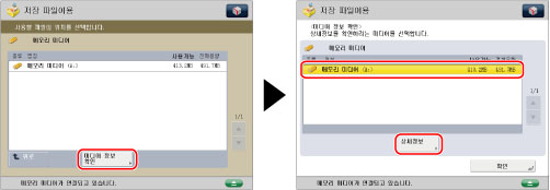 [미디어 정보 확인] → 원하는 메모리 미디어를 선택하고 → [상세정보]를 누릅니다.
