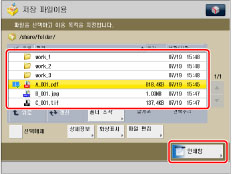 폴더에 두 개 이상의 문서가 저장된 경우 [명칭]이나 [날짜/시각]을 눌러 파일 리스트를 정렬할 수 있습니다.