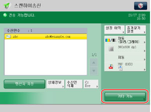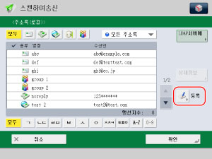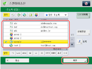등록한 수신인을 선택하고 → [확인]을 누릅니다.