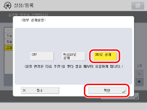 (설정/등록) → [기능 설정] → [파일 저장/이용] → [고급 박스 설정] → [외부 공개 설정]을 누릅니다.