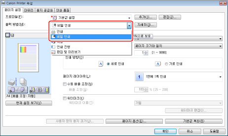 인쇄 화면은 사용 중인 응용 프로그램 유형에 따라 다를 수 있습니다.