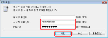 기기에서 인쇄하려면 비밀번호를 다시 입력해야 합니다. 문서에서 비밀번호가 설정된 후에는 비밀번호를 적어서 안전한 곳에 보관합니다.