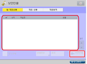 자물쇠 아이콘이 보안 인쇄 작업의 인쇄 작업 번호 왼쪽에 표시됩니다.
