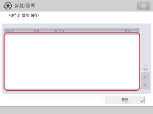 [설정/등록] → [환경 설정] → [네트워크] → [IP 주소 블럭 이력]을 누릅니다.