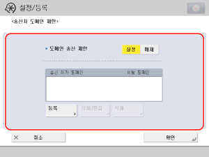 이메일이 송신되는 도메인을 제한할 수 있습니다. 이메일을 지정된 도메인의 이메일 주소로만 송신되도록 함으로써 정보 누출을 방지할 수 있습니다. 아래 절차에 따라 송신처 도메인을 지정합니다.