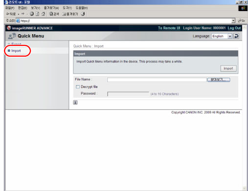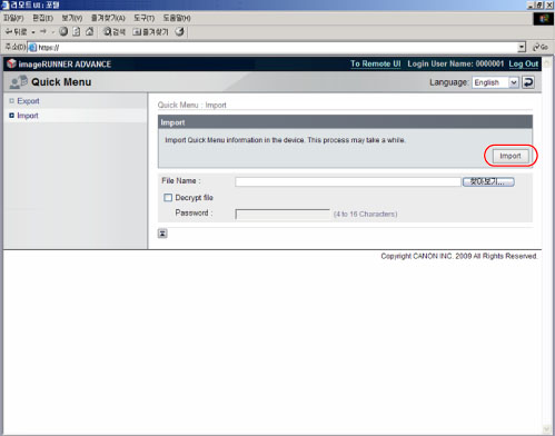 [Import]를 클릭하여 가져오기 페이지를 표시합니다.