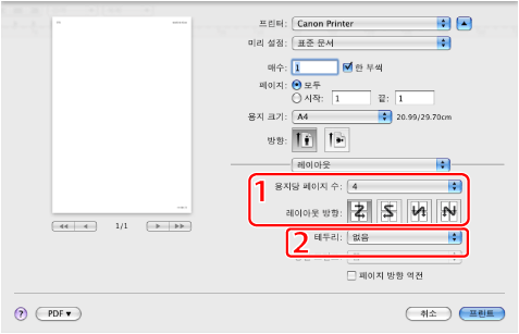 각 페이지에 테두리를 넣어 인쇄합니다.