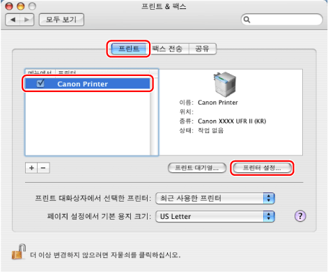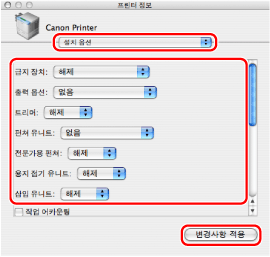 설정한 것을 [변경사항 적용]을 클릭하지 않고 [프린터 정보] 대화 상자를 닫을 경우 설정이 저장되지 않습니다.