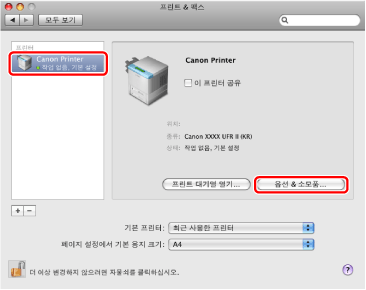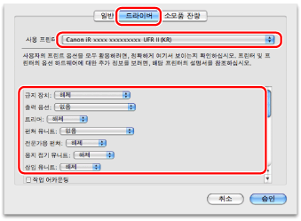 기기가 양방향 통신에 의해 연결된 경우 이 절차에 대한 설정을 사용할 수 없습니다. 선택품목을 자동으로 설정하기 위해서는 "프린터 정보 보기"의 절차를 따릅니다.