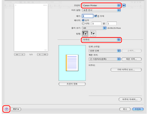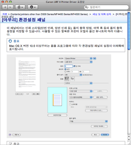 화면은 운영 체제와 프린터 드라이버의 종류 및 버전에 따라 다를 수 있습니다.