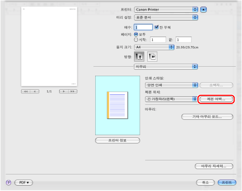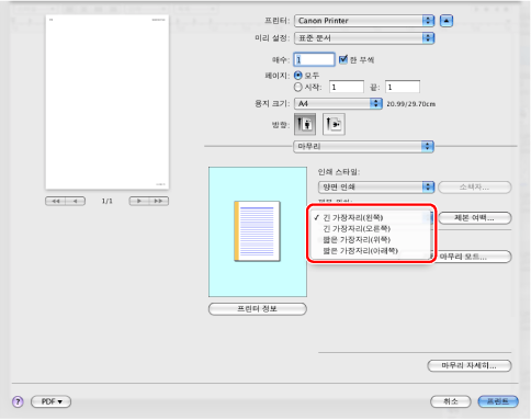 화면은 운영 체제와 프린터 드라이버의 종류 및 버전에 따라 다를 수 있습니다.