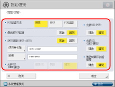 若要傳送加密資料,將<允許SSL(POP)>或<允許SSL(SMTP傳送)>設定為「開啟」。