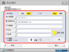 輸入SMTP伺服器的IP位址或名稱→按[確定]。