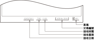 可以設定本機器是否在已接收文件的最下方列印接收日期、接收星期、接收時間、交易編號和頁碼。