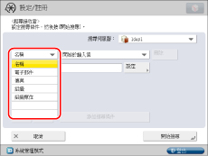 若註冊了多個LDAP伺服器並且「設定/註冊」的[設定接收者]中的[使用LDAP伺服器時自動搜尋]設定為「開啟」,則搜尋下拉清單上顯示的第一個註冊的伺服器。