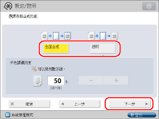 若選擇[透明],按[-]或[+]調整半色調濃淡度→按[下一步]。