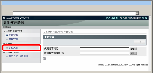 可以從「遠端使用者介面」使用「註冊/更新軟體」功能將本機器的韌體更新到最新的版本。