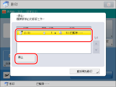 若在本機器影印或等候影印時出現的快顯螢幕上按[停止],則可以取消正在影印的工作或等待影印的已掃描原稿的最後一份工作。