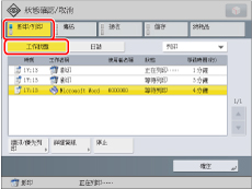 可以從串聯影印印表機的「狀態確認/取消」螢幕取消串聯影印工作。在這種情況下,不會取消本機器正在處理的串聯影印工作。
