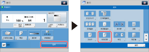 若設定[頁碼編排]、[影印套編排]或[浮水印]中的任兩個在同一位置列印,則按