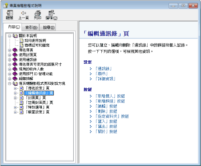 按一下[內容]/[索引]/[搜尋]搜尋資訊。
