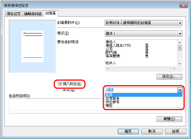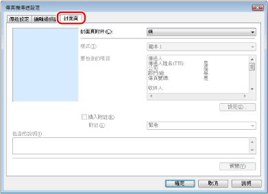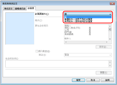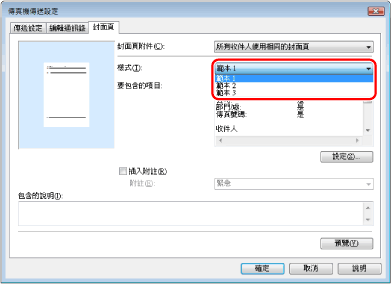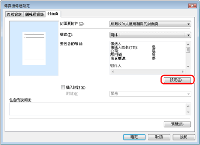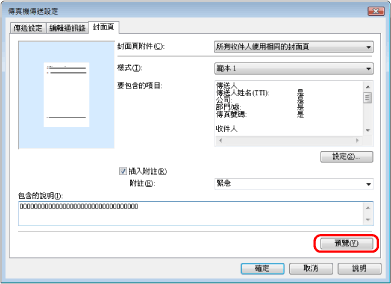 [傳送設定]頁中指定的收件人資訊列印到封面頁上。