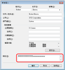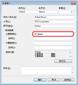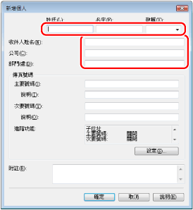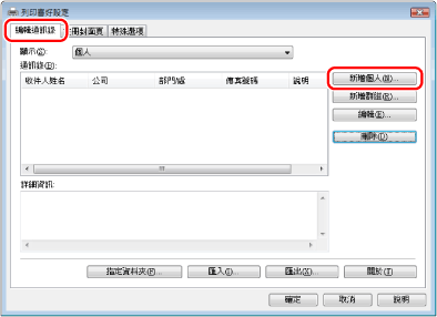 也可以編輯之前註冊的單個個人位址。有關詳細資訊,請按一下傳真驅動程式視窗右下角的[說明]檢視連線說明。