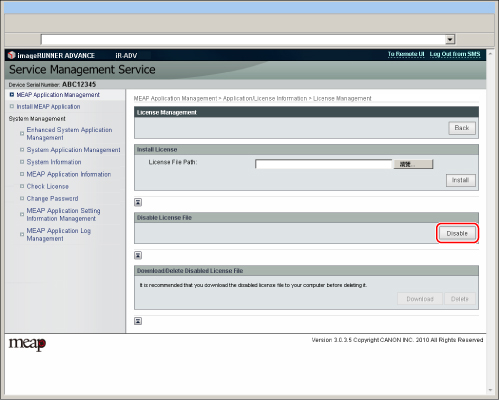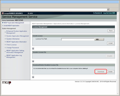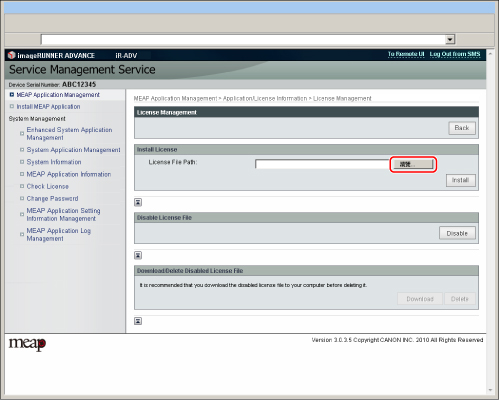 按一下[MEAP Application Management](MEAP應用程式管理)。