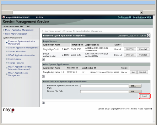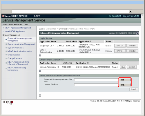 安裝系統應用程式時,必須同時指定應用程式檔案和許可協議檔案。