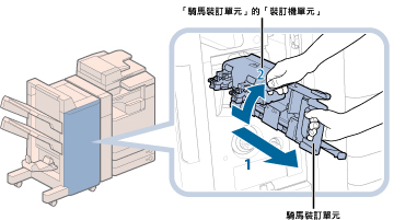 2. 朝身體方向拉出騎馬裝訂單元的裝訂機單元,然後將其向上推。 |