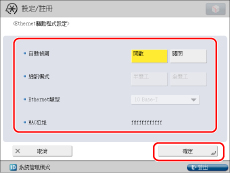 按[網路]的[Ethernet驅動程式設定]→指定以下項目→按[確定]。