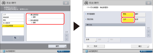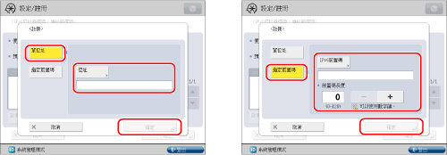 按[預設路由器位址]→輸入預設路由器位址→按[確定]。若不想指定預設路由器位址,請勿填寫[預設路由器位址]欄。