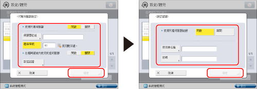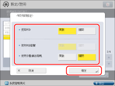若沒有鍵值對,則不能將<確認部門識別碼PIN>設定為「開啟」。可以使用預裝的鍵值對,或在本機器上生成新鍵值對以設定為預設鍵值。有關預設鍵值的資訊和如何生成新鍵值對的說明,請參閱"生成鍵值對和伺服器憑證"或"註冊從電腦安裝的鍵值對檔案和伺服器憑證檔案."