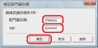 輸入[部門識別碼]和[PIN]→按一下[確定]。