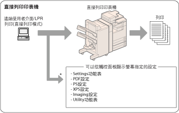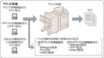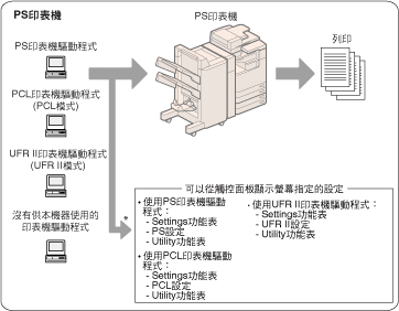 UFR II、PCL、PS和直接列印印表機操作的差異性