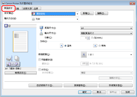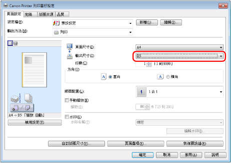 從[頁面尺寸]選擇在應用程式中創建的文件的頁面尺寸。