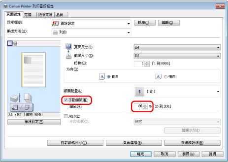 根據所使用的印表機型號,可能無法將文件放大到適合所選頁面尺寸的最佳倍率。