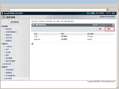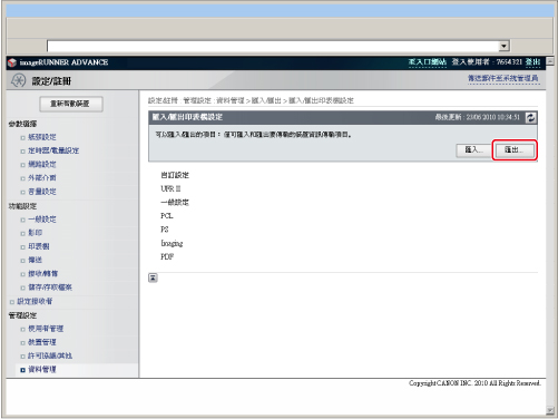 [自訂格式]:若要將檔案匯入其他Canon機器中,選擇此項。