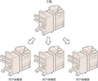 可以在相同型號的機器(imageRUNNER ADVANCE 4051/4045/4035)之間共用裝置資訊。但是,根據本機器上可用的選購產品,某些資訊可能不能正確傳輸。