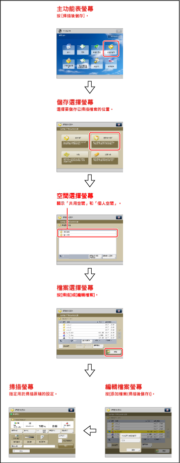 掃描原稿並將其儲存在儲存空間中。 |