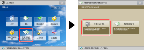 按[傳真/網際網路傳真收件匣]→[記憶接收收件匣]。