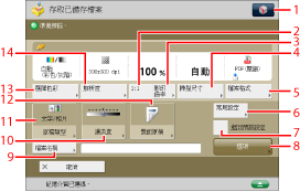 有關[添加檔案(掃描後儲存)]的操作和操作「掃描」螢幕的說明,請參閱"添加檔案(掃描後儲存)"和"掃描後儲存操作流程."