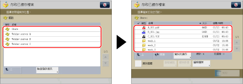 要使用網路儲存位置,必須事先根據需要對其進行設定。有關詳細資訊,請參閱"進階郵件信箱/網路設定."