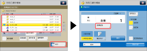 該模式只能用於列印儲存在「進階郵件信箱」、網路上其他imageRUNNER ADVANCE機器的「進階郵件信箱」或記憶介質中的檔案。