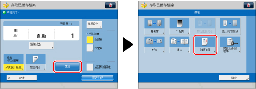 該模式只能用於列印儲存在「進階郵件信箱」、網路上其他imageRUNNER ADVANCE機器的「進階郵件信箱」或記憶介質中的檔案。