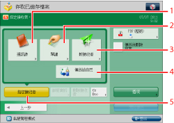 有關[添加檔案(掃描後儲存)]的操作和操作「掃描」螢幕的說明,請參閱"添加檔案(掃描後儲存)"和"掃描後儲存操作流程."