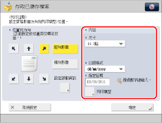 也可以調整日期的位置。(See "註冊/編輯/刪除頁碼和浮水印的使用者定義文字.")